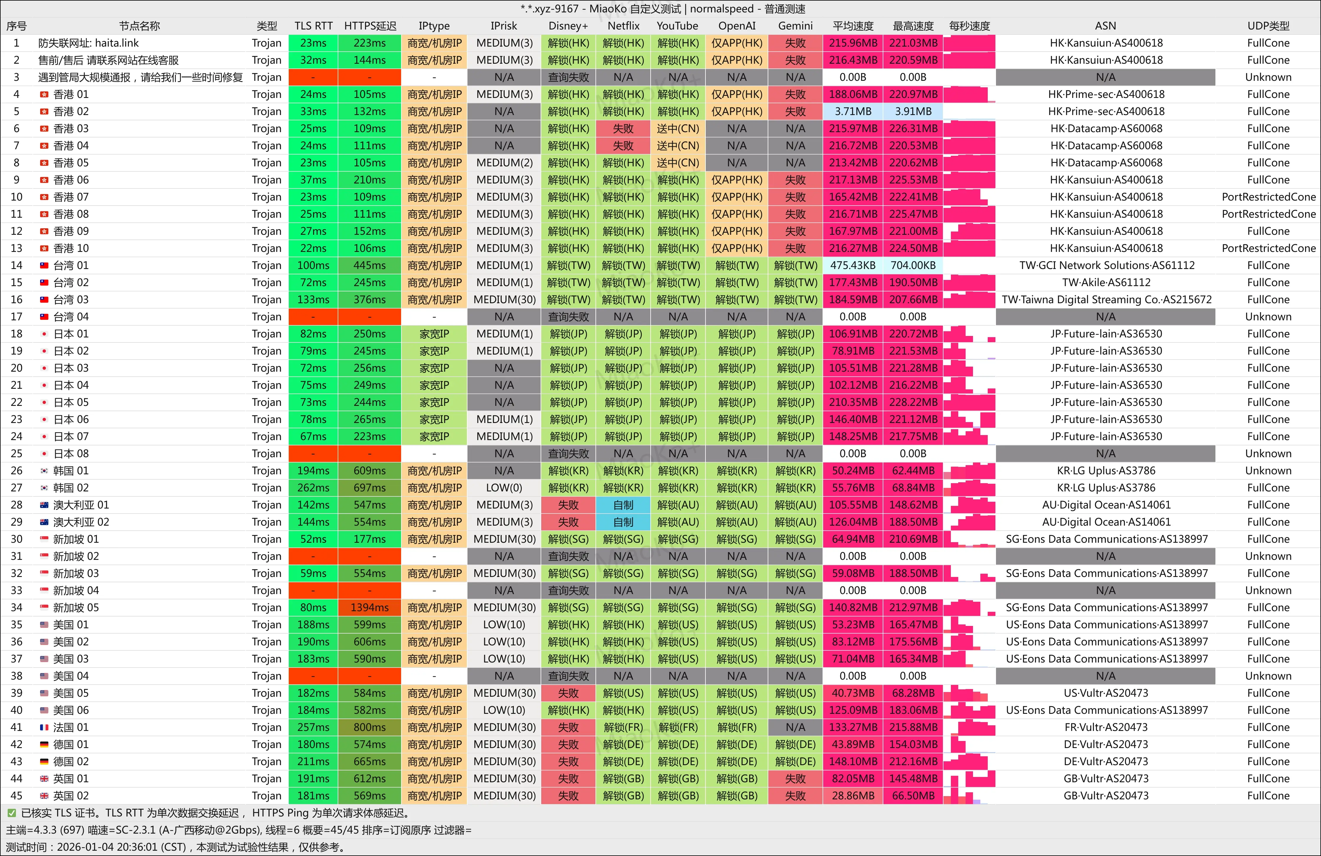 便宜中转Trojan机场。这家主要是带宽充足。目前入口有三个,可避免同时全挂:广东(香港、新加坡、台湾)和上海(日本、美国)。